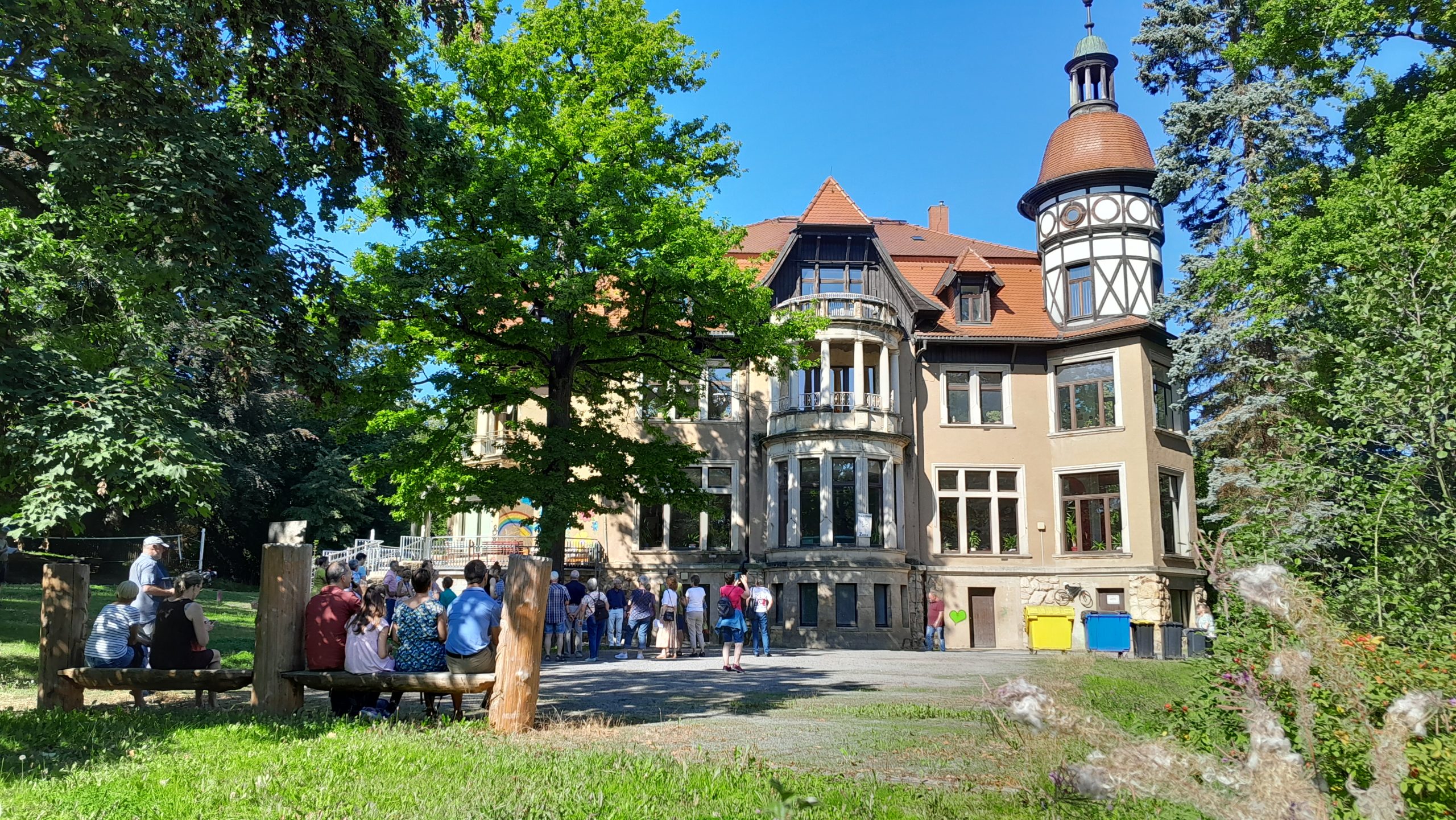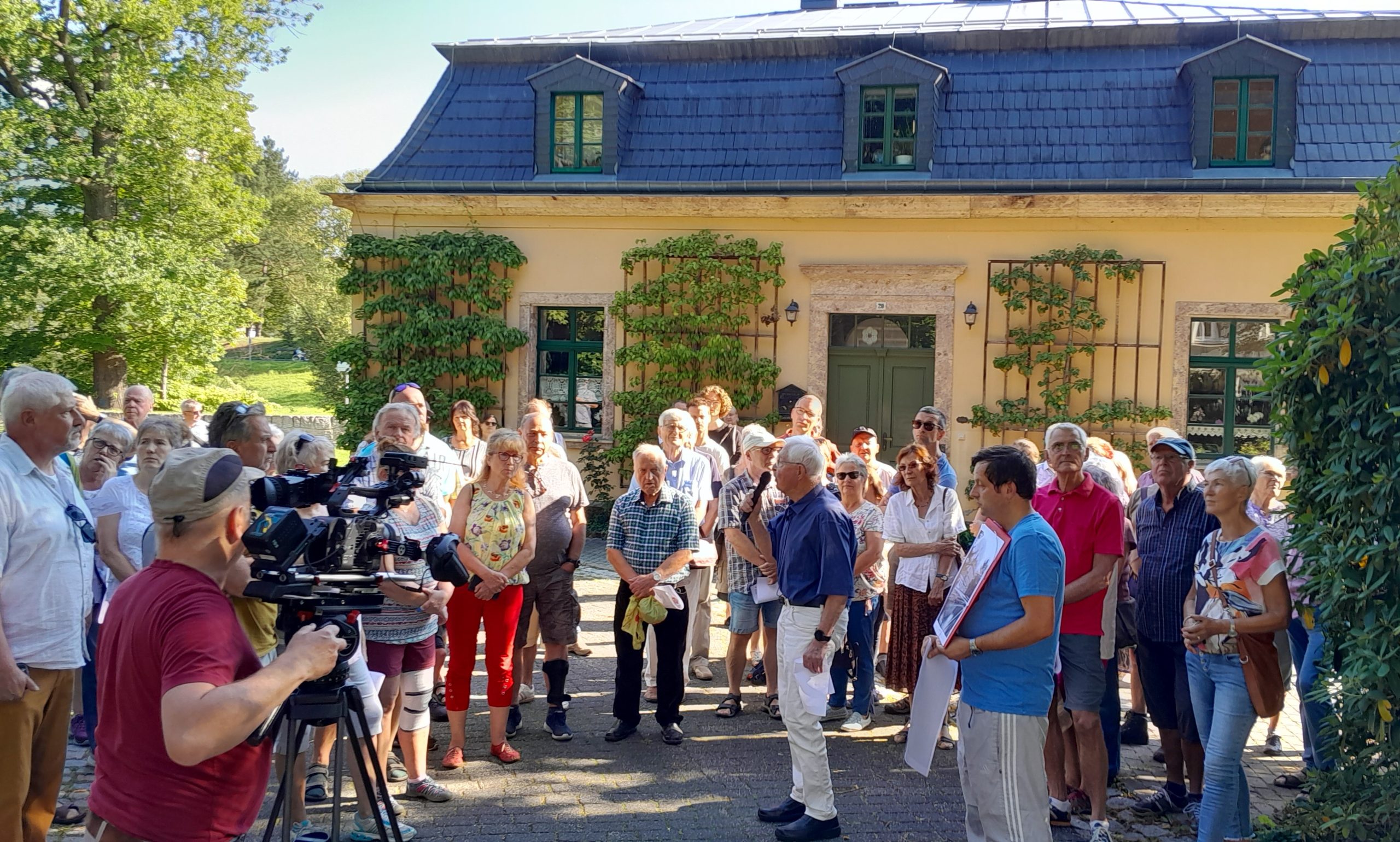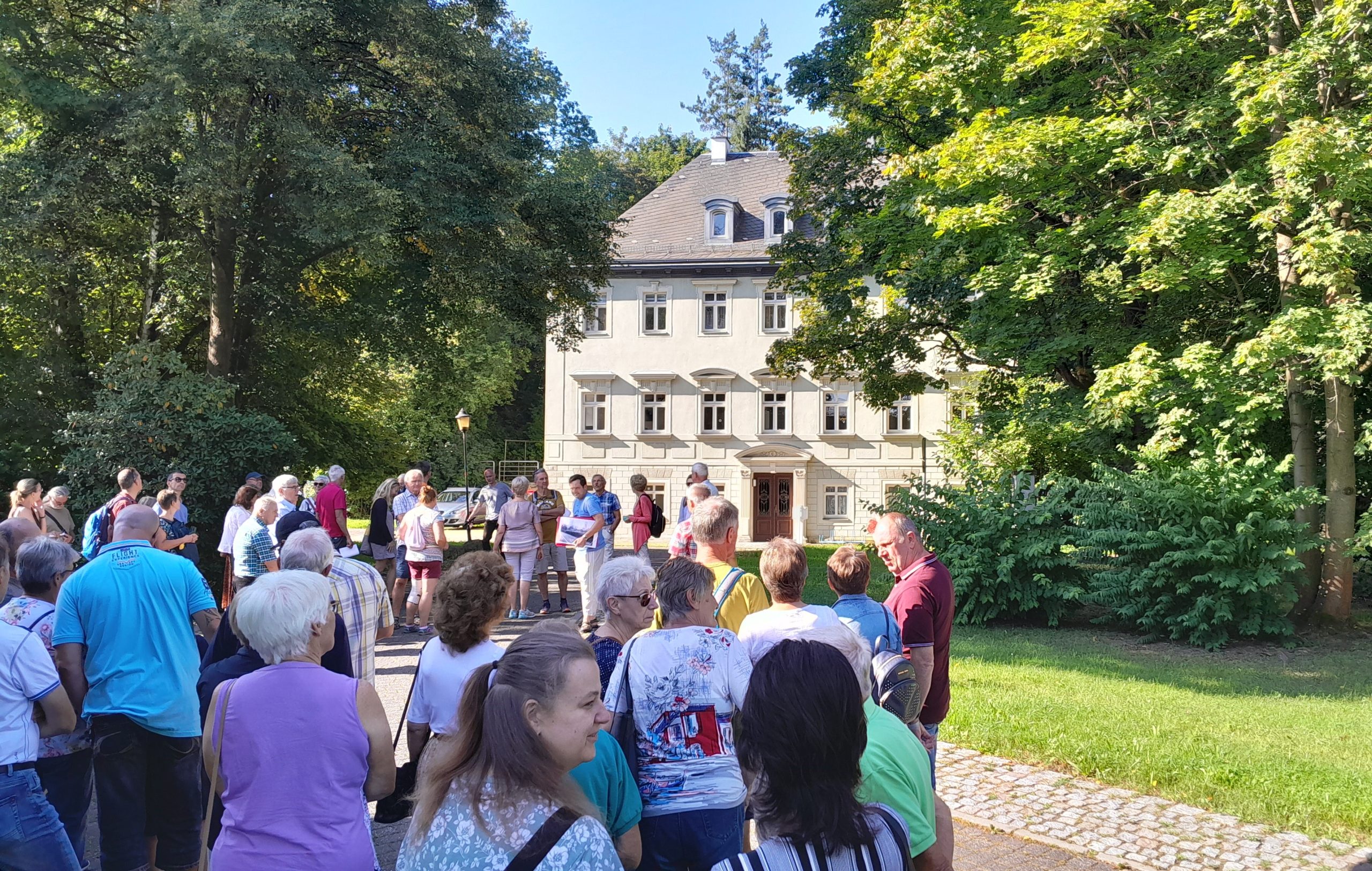 Zum diesjährigen Tag des offenen Denkmals am 10.09.2023 nutzten rund 80 Besucher die Gelegenheit, Wissenswertes über die Bauwerke zu erfahren, die über die Industriebauten der ehemaligen Baumwollspinnerei Flöha hinaus in der Ära Stefan Clauß entstanden sind. Das große Interesse am Rundgang lag sicher nicht nur am schönen Wetter, denn es war Lothar Schreiter, der an jeder der sechs Stationen die Historie zum Gebäude vermittelte und die ein oder andere Anekdote dazu erzählen konnte. Dafür erhielt der 93 -jährige Geschichtsliebhaber nach dem zweistündigen Rundgang einen großen Applaus.